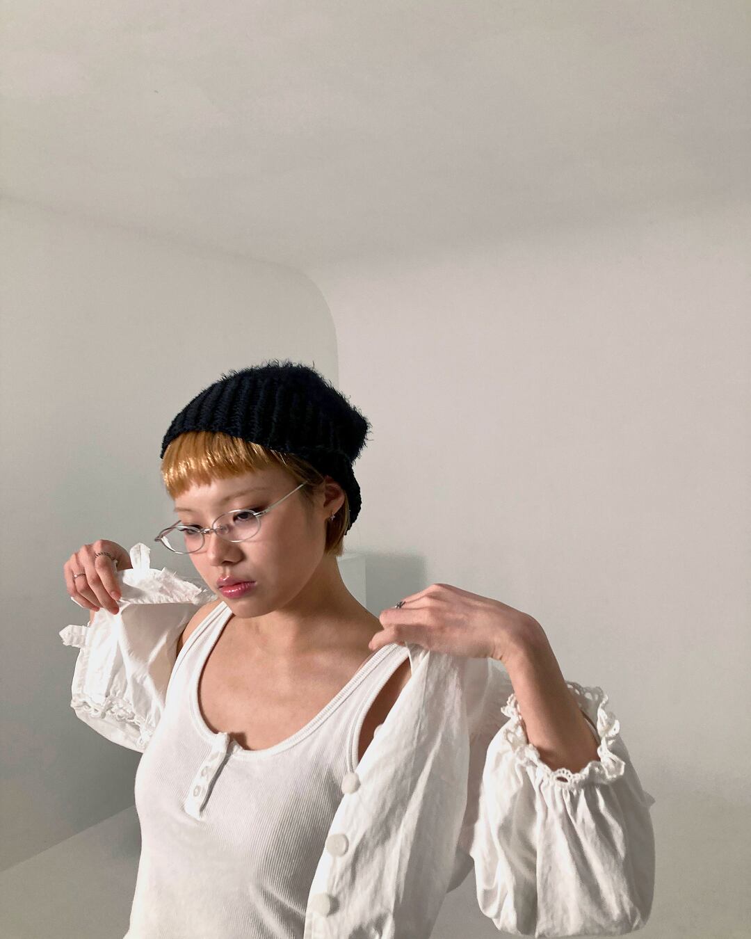 商品の一部、または100%にアップサイクル材料を使用したアイテムです。材料は国内のニット工場から出る残糸(生産過程で余ってしまう糸)がメインとなります。同じ糸の量に限りがありますので、アイテムは全て一点物となります。